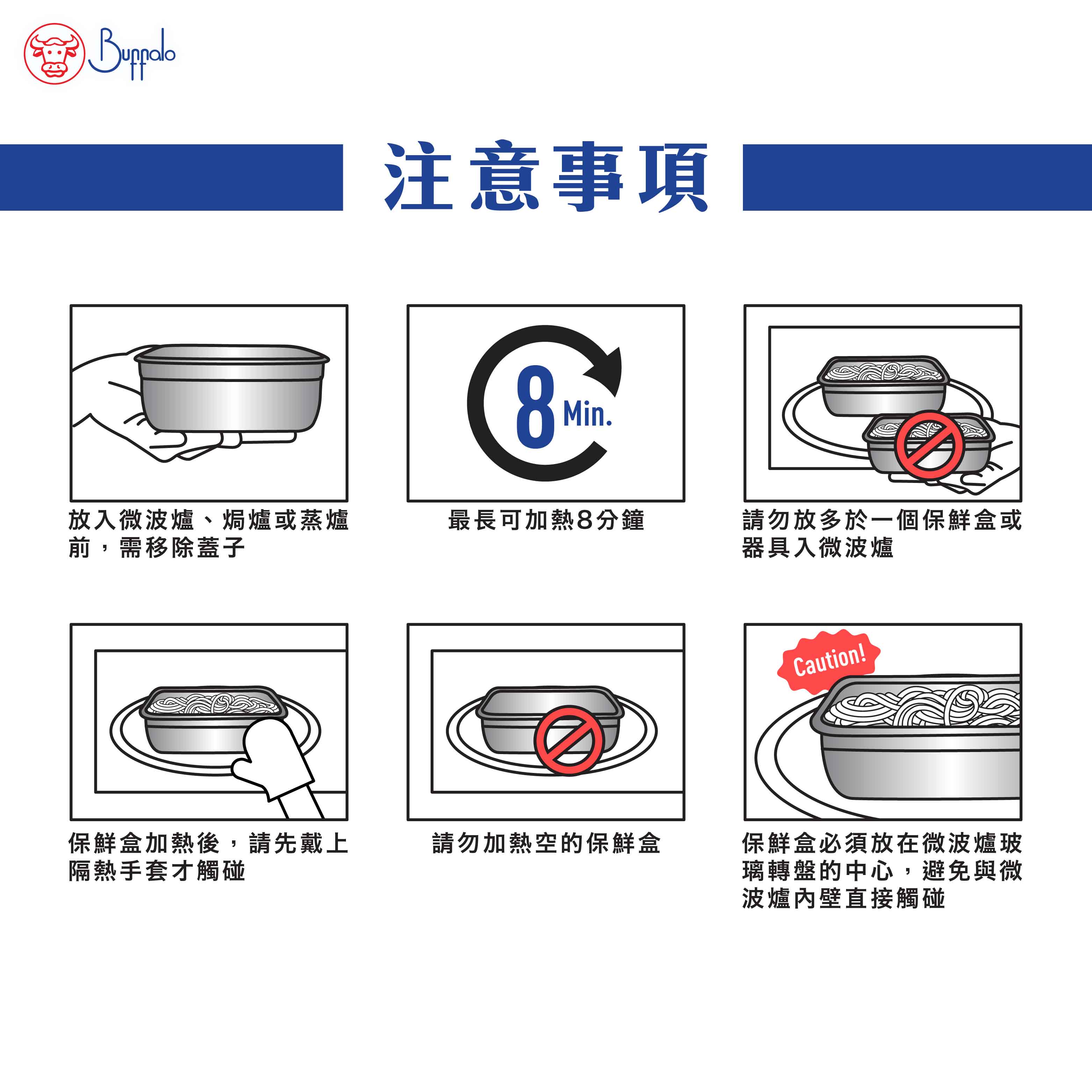 1. 放入微波爐、焗爐或蒸爐前,請先移除蓋子