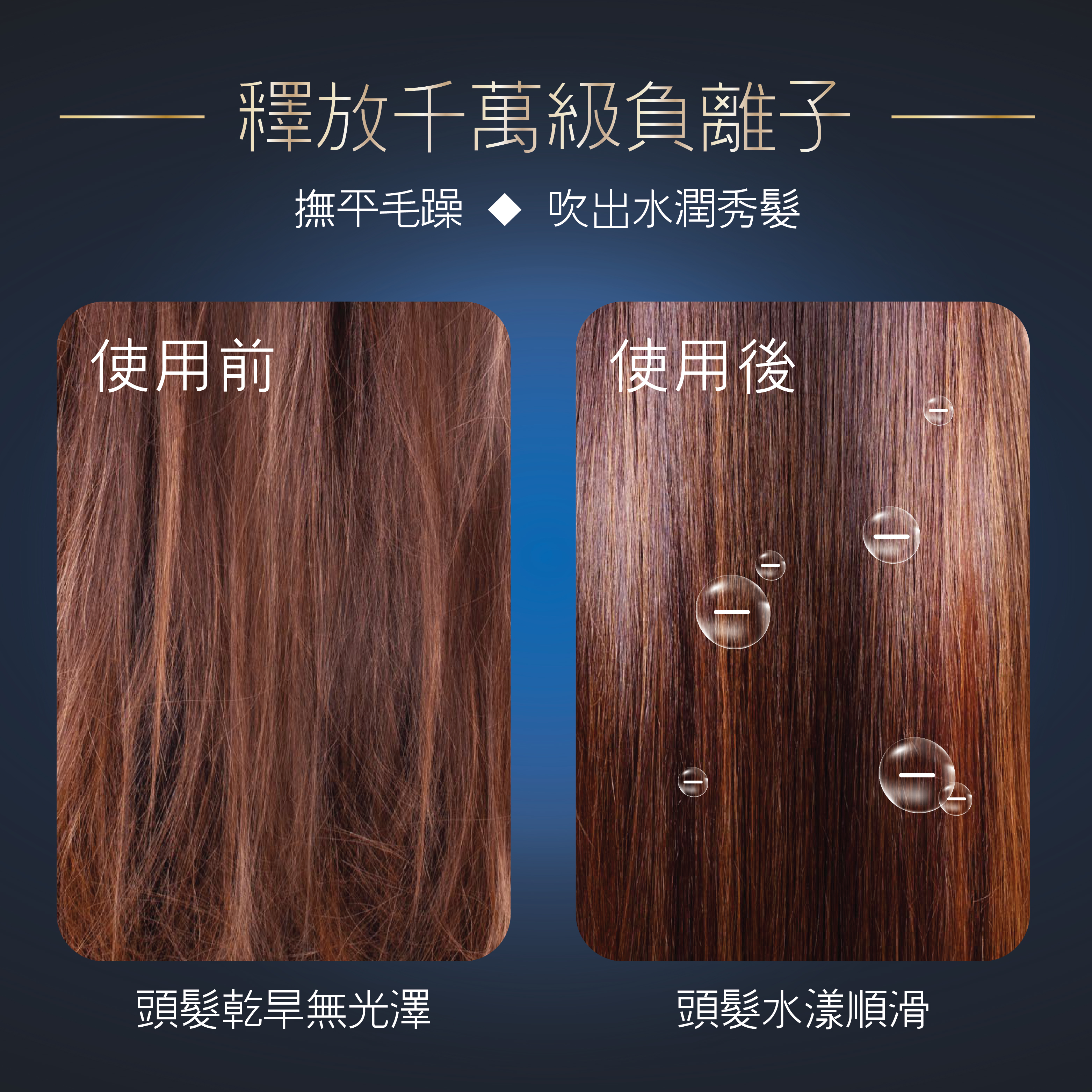 .內置負離子發生器,釋放約千萬級負離子,能中和靜電、撫平毛躁,使髮絲更順滑有光澤