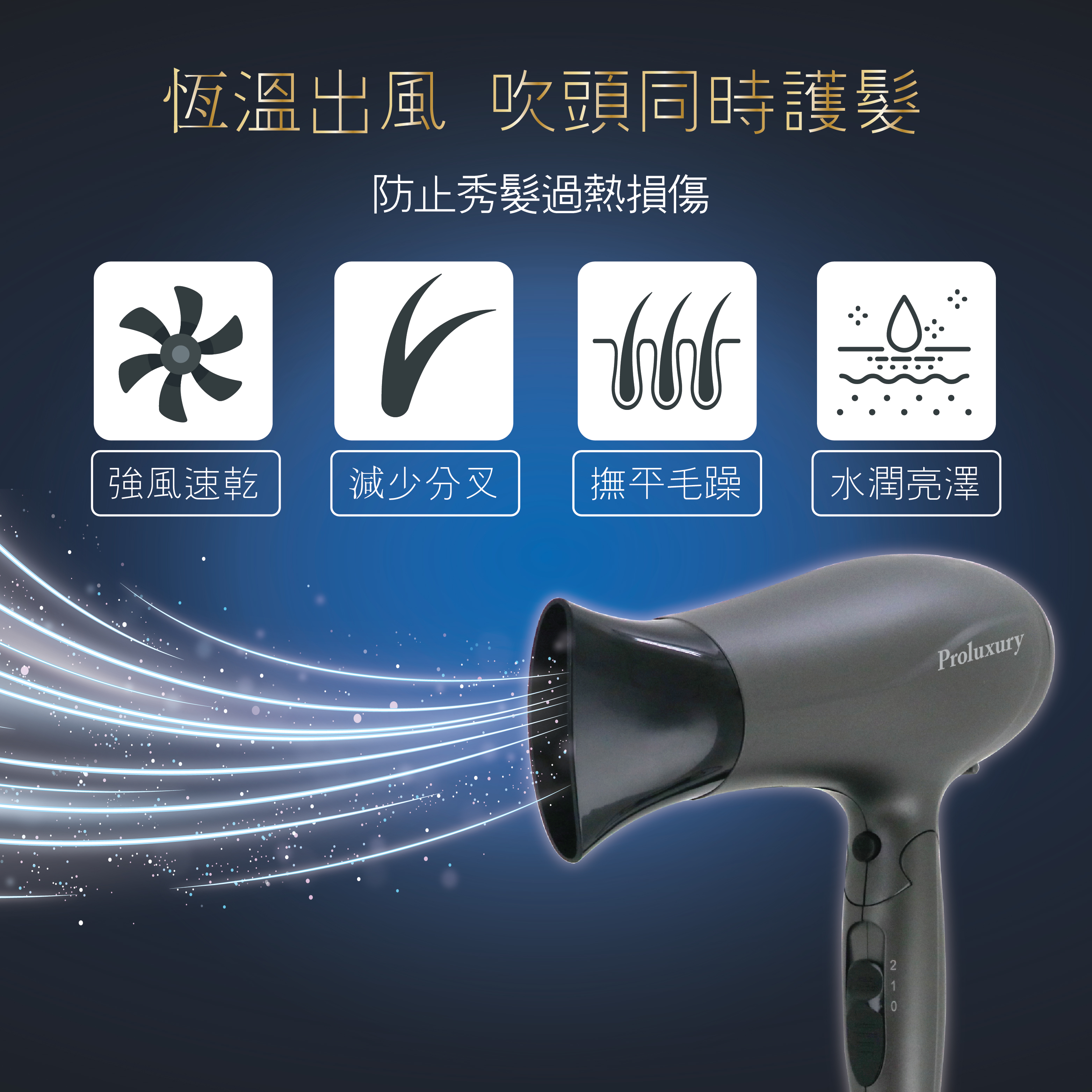 .採用1800-2200W 大功率馬達,輸出強勁風速,快速吹乾頭髮,縮短乾髮時間