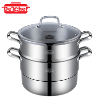 DELICHEF 三層不銹鋼雙層雙耳蒸煮鍋連玻璃蓋 (28X18CM)