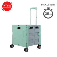 Alina 摺疊式隱藏蓋四輪購物車 (大號 /茶綠色) (ATT008LG)