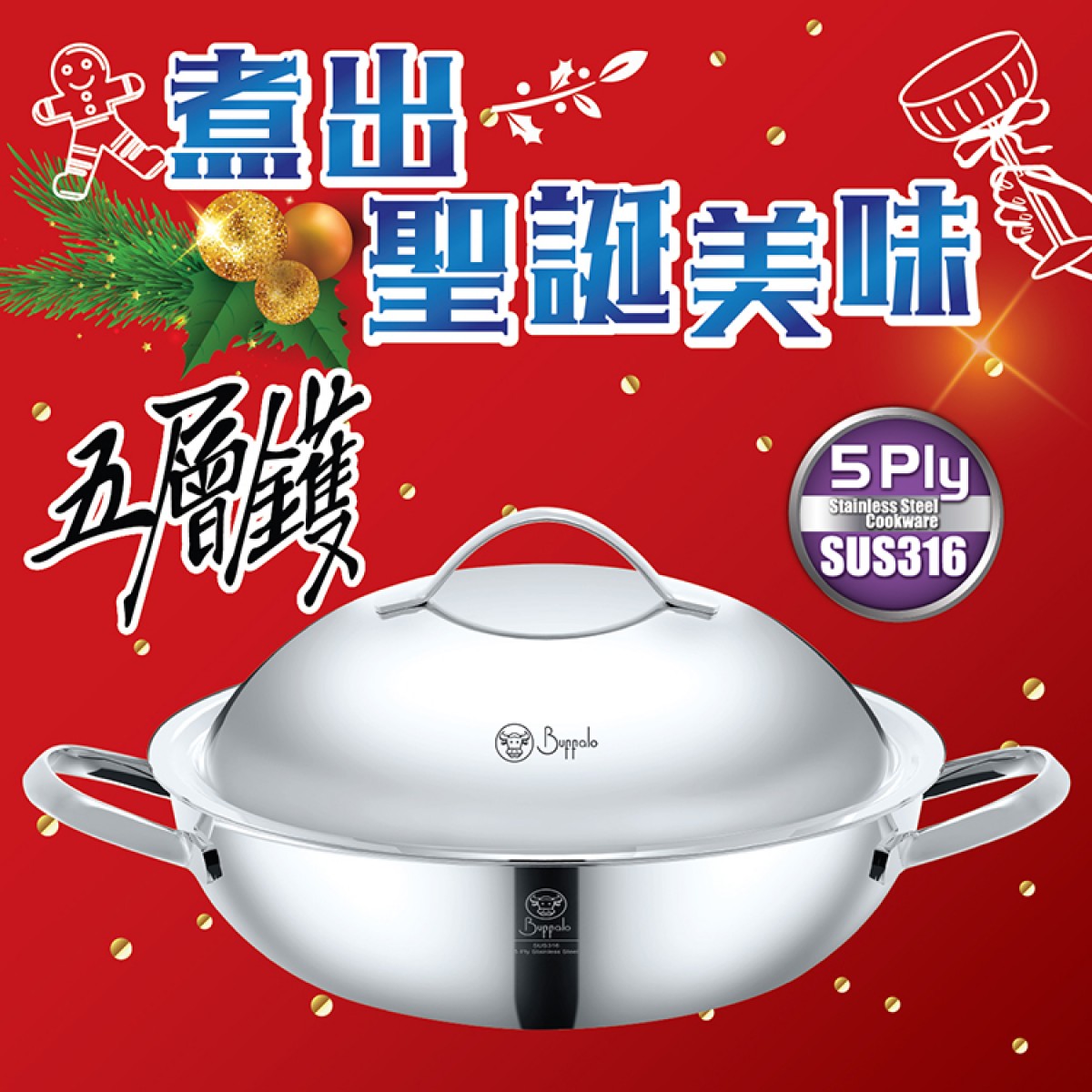 SUS316為優質醫療級不銹鋼,可安全用於生物醫學應用、身體穿孔和植入人體,它還可以用於食品和藥品的生產和處理。此外,316不銹鋼含鉬元素,使其更耐腐蝕性。它可抵抗鹽對廚具材質表面所造成的影響。此外,它不會與煮熟後的食物、蔬菜和食品添加劑中的酸鹼值產生變化,使烹煮的食物更安全及健康。牛頭牌廚具外層儲熱效能高,傳熱快速,省時節能;外層亦不易被氧化或銹蝕。316不銹鋼傳熱快,可以縮短烹飪時間,並保留了更多食物的水分和營養