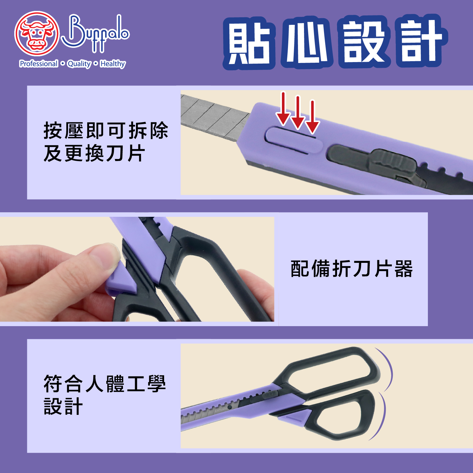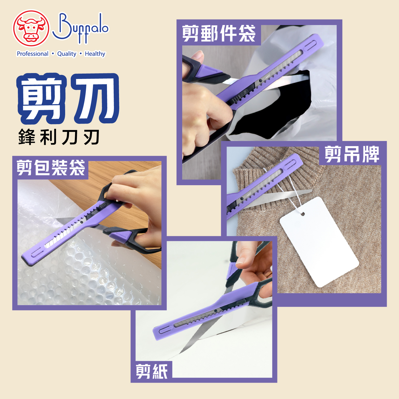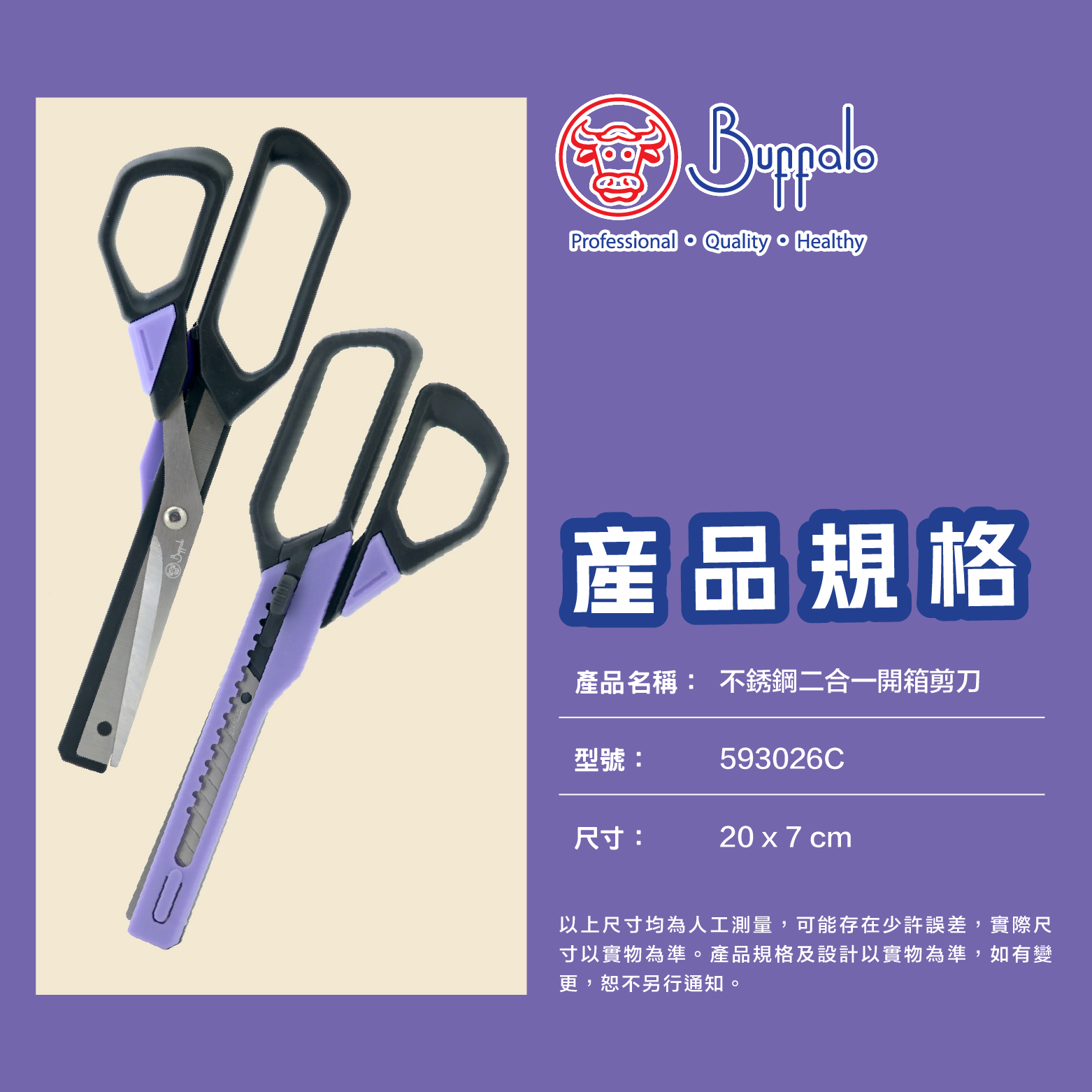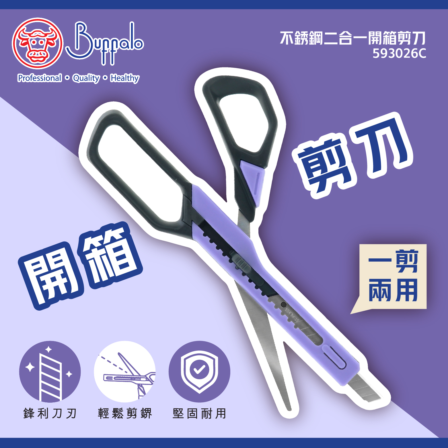 牛頭牌不銹鋼二合一開箱剪刀 (紫色)